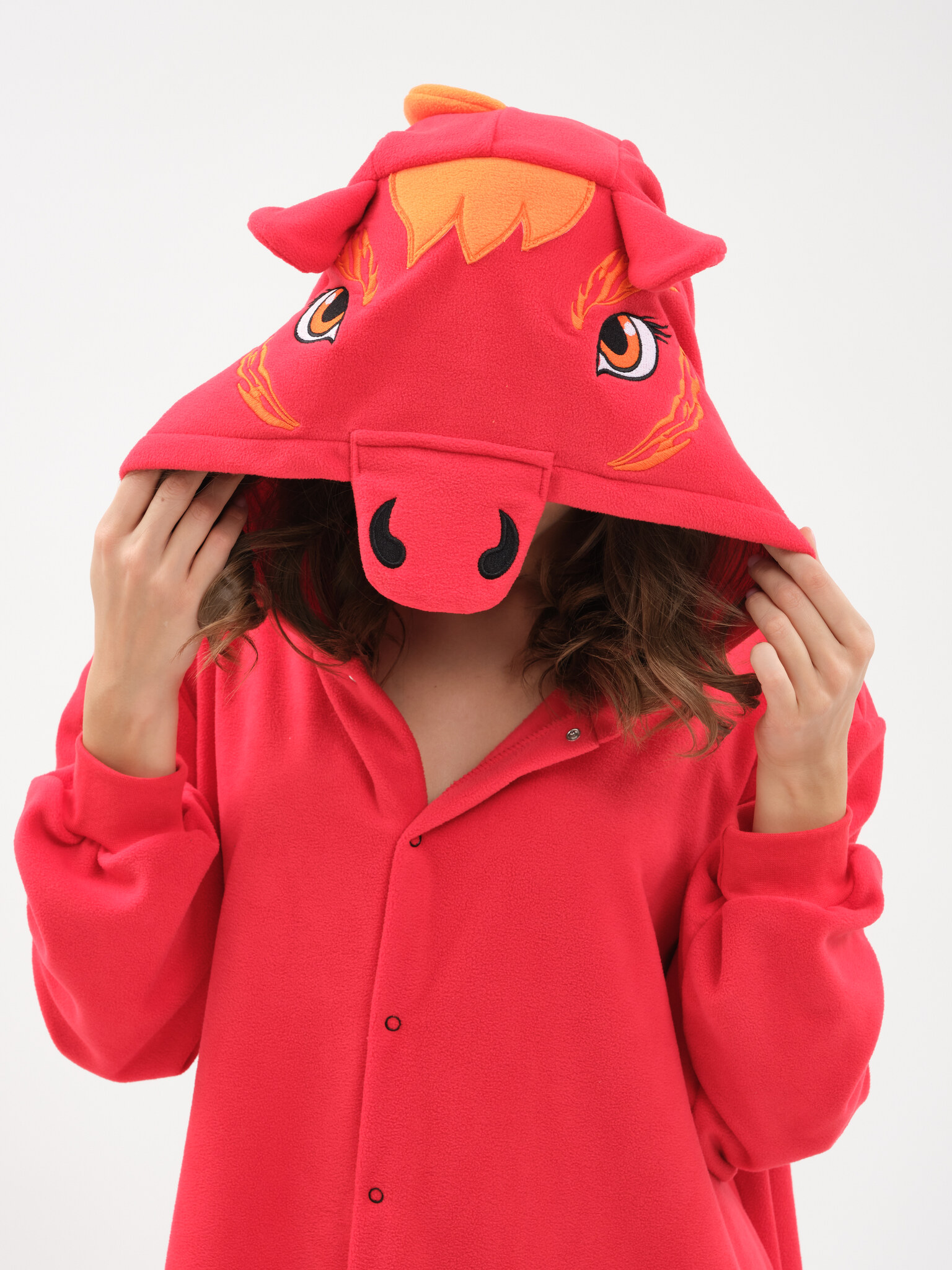 Яркая пижамы кигуруми Красная огненная лошадь унисекс :